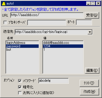 Webメールなどのログインフォームに自動ログインするHTMLファイルを作成します。