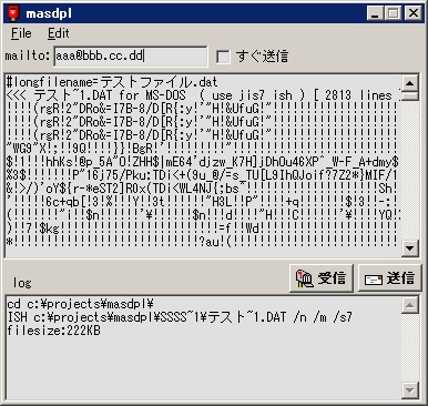 手軽にファイルをISH形式で指定メールアドレスに送信・受信・復元。